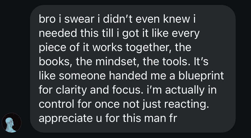 Perfect. This bundle builds you from the ground up. Discipline. Income. Identity. It’s a full reset.